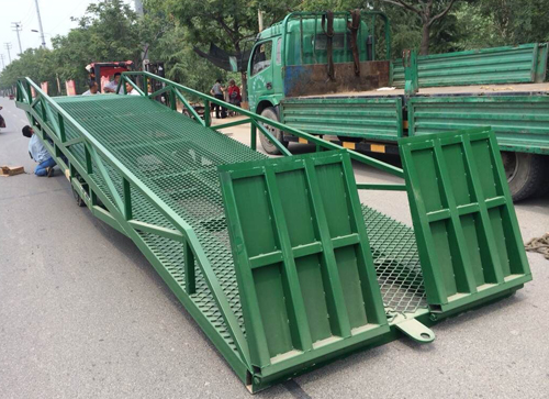 移動式登車橋與叉車配合使用的貨物裝卸輔助設(shè)備,可根據(jù)汽車車廂的高低調(diào)節(jié)高度,叉車可以直接通過本設(shè)備駛?cè)胲噹麅?nèi)部進(jìn)行貨物的批量裝卸,僅需單人作業(yè),即可實(shí)現(xiàn)貨物的快速裝卸。它使企業(yè)減少大量勞力,提高工作效率,獲取更大經(jīng)濟(jì)效益。